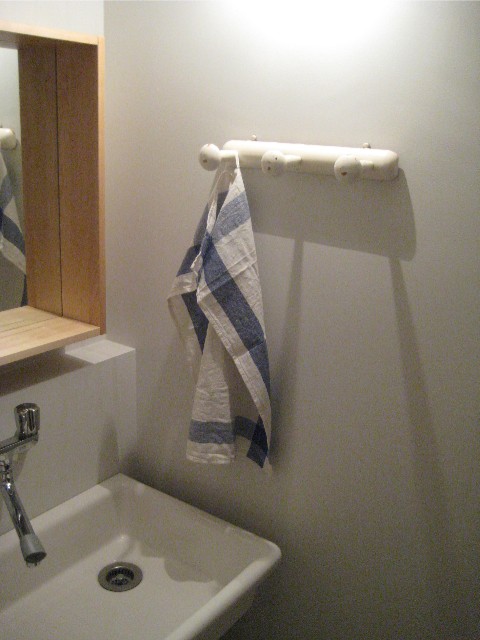 洗面所のタオル掛けが付きました。(やっと)