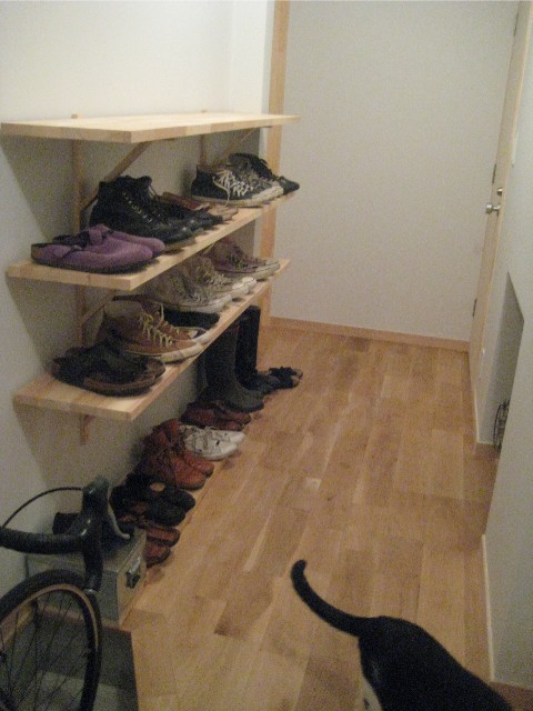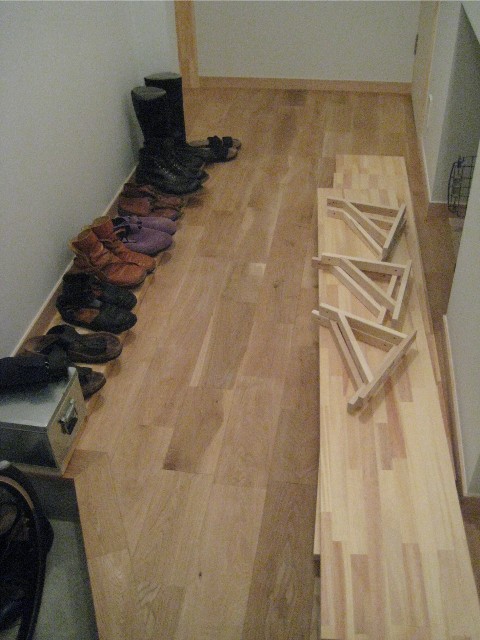 右に見えるのが「靴置き棚」の材料。