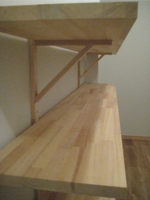 IKEAの木製棚受け6個と24mm厚の集成カウンター材(パイン系)です。