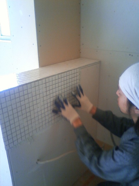 ・素人はタイル側に接着剤を塗った方が確かかも。