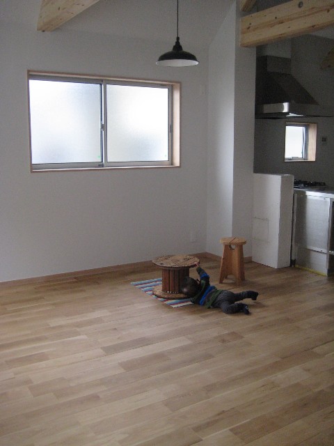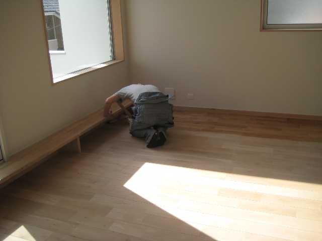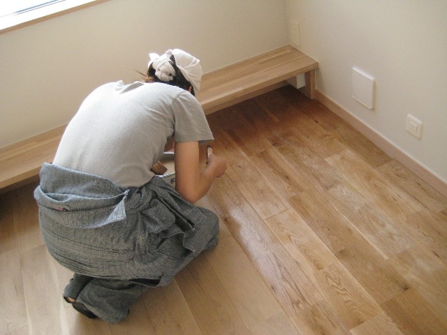 先週末は最後の仕上げ、床のオイル塗りをしました。