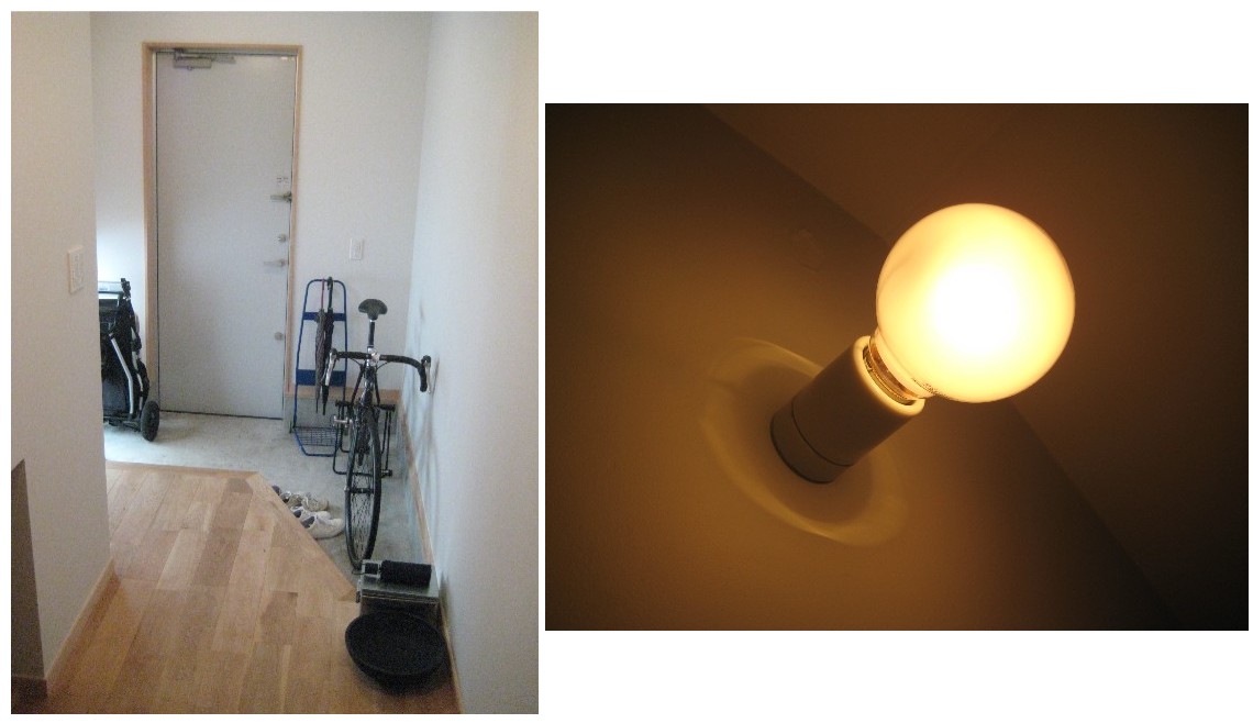 2度塗り目のオイルが乾いたら照明器具(ほとんど裸電球)を