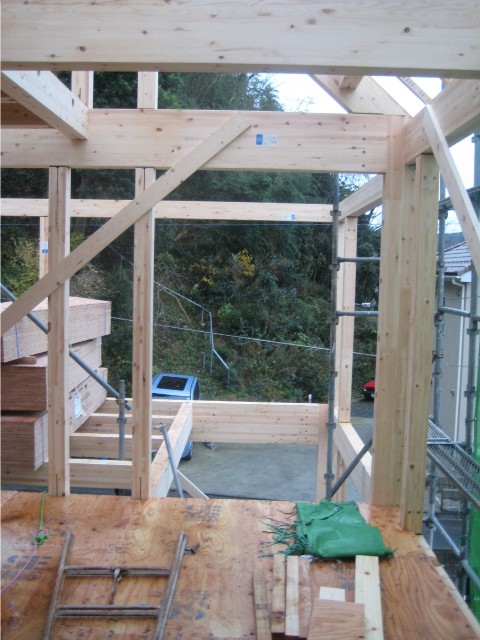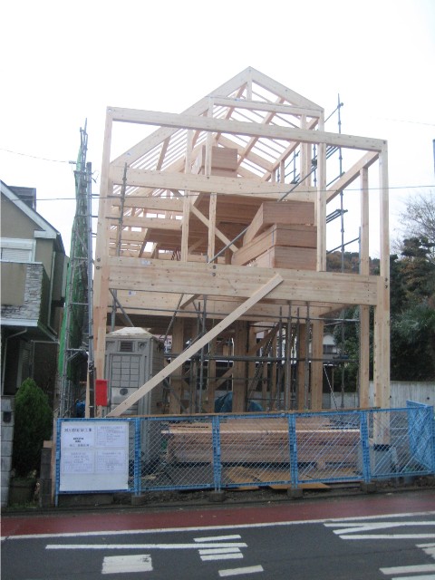 ここからは週末の上棟にむけて、仮設工事が進みます。