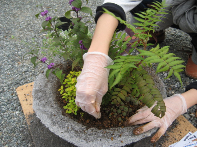 このあと、足下の砂の山に木で出来たクワを