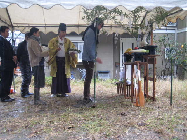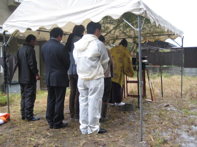 朝から雨が降っていたのでテントをはっての地鎮祭。